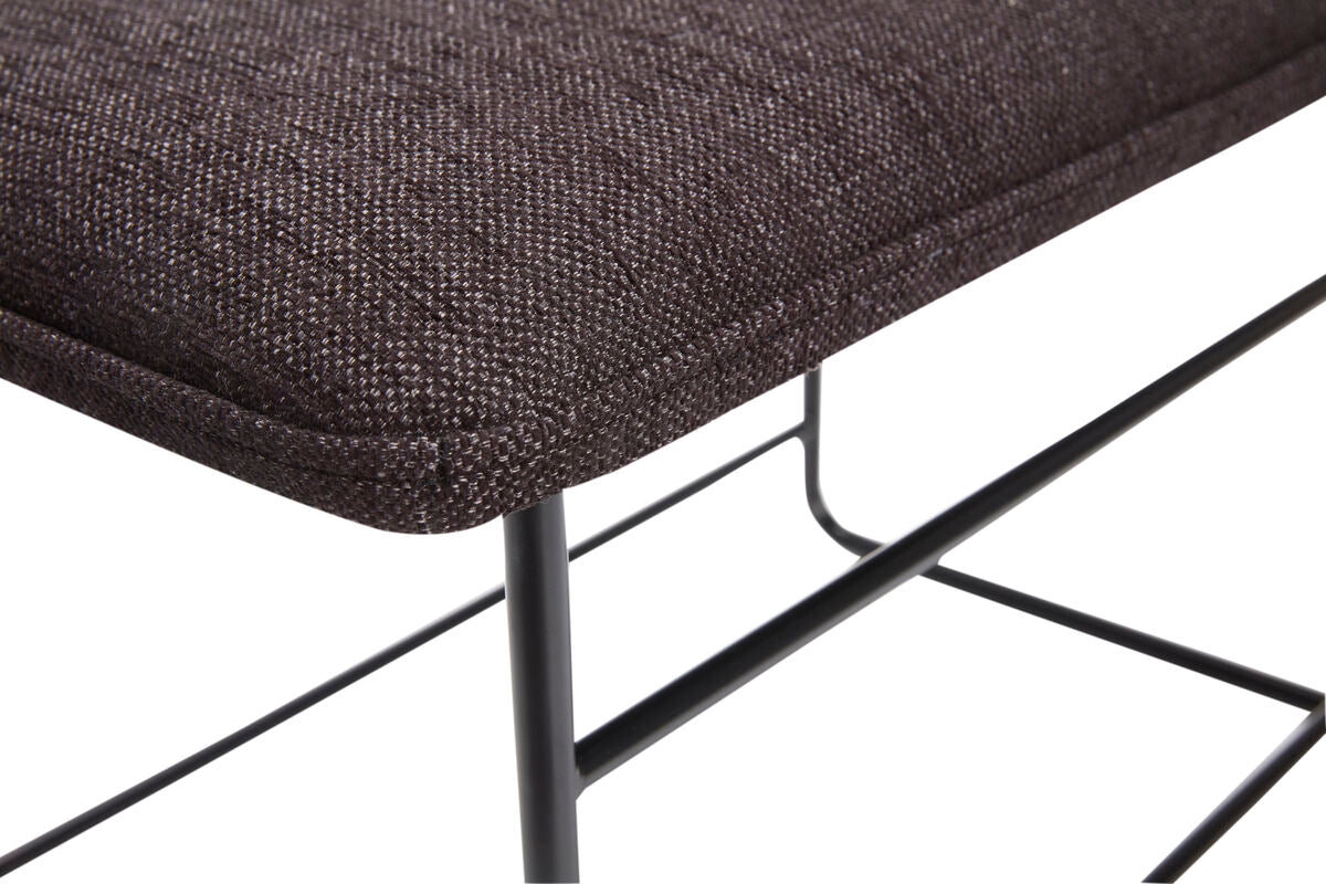 This stool is made from a black metal frame and a dark upholstered seat. The neatly bend legs and straight lines in the framework, combined with the cushion gives the chair a certain elegance. The stool can be used for mutiple functions in your home. You can use it in your living room, kitchen, hallway or bedroom.