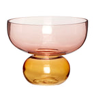 This vase is made from glass and comes in a colour combination of pink and amber. The combination of the two colours creates a bright and fun look. The unique shaping of the vase makes it a modern and stylish piece of interior. This product is handmade and may therefore variate.
