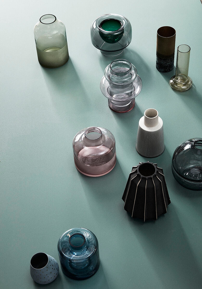 This vase is made of glass in a smoky green colour. The shape of the vase is elegant. You can place the vase on a dresser, on the dining table or on any other place in your home for a touch of elegance. The vase is nice both with and without flowers.