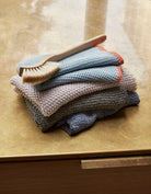 This tea towel is made of cotton, and is knitted from blue and white threaded yarn. The tea towel has a bordeaux edge and hanger The perfect tea towel that combines functionality and aesthetics.
