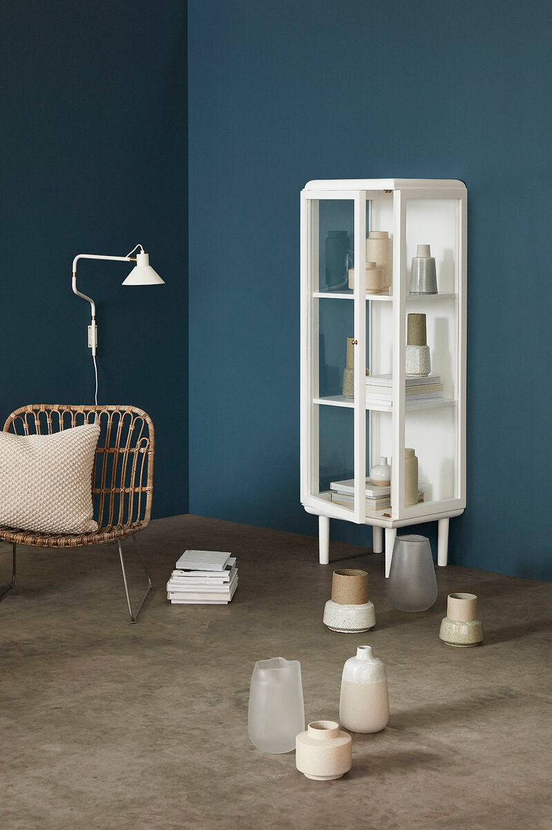 This lounge chair is made from rattan and metal. The frame and legs are both made of metal, while the seat is made from rattan. The legs are neatly bended into a simple and minimalistic shape. The large seat has an open structure that gives the lounge chair a light look. This product is handmade and may therefore variate.